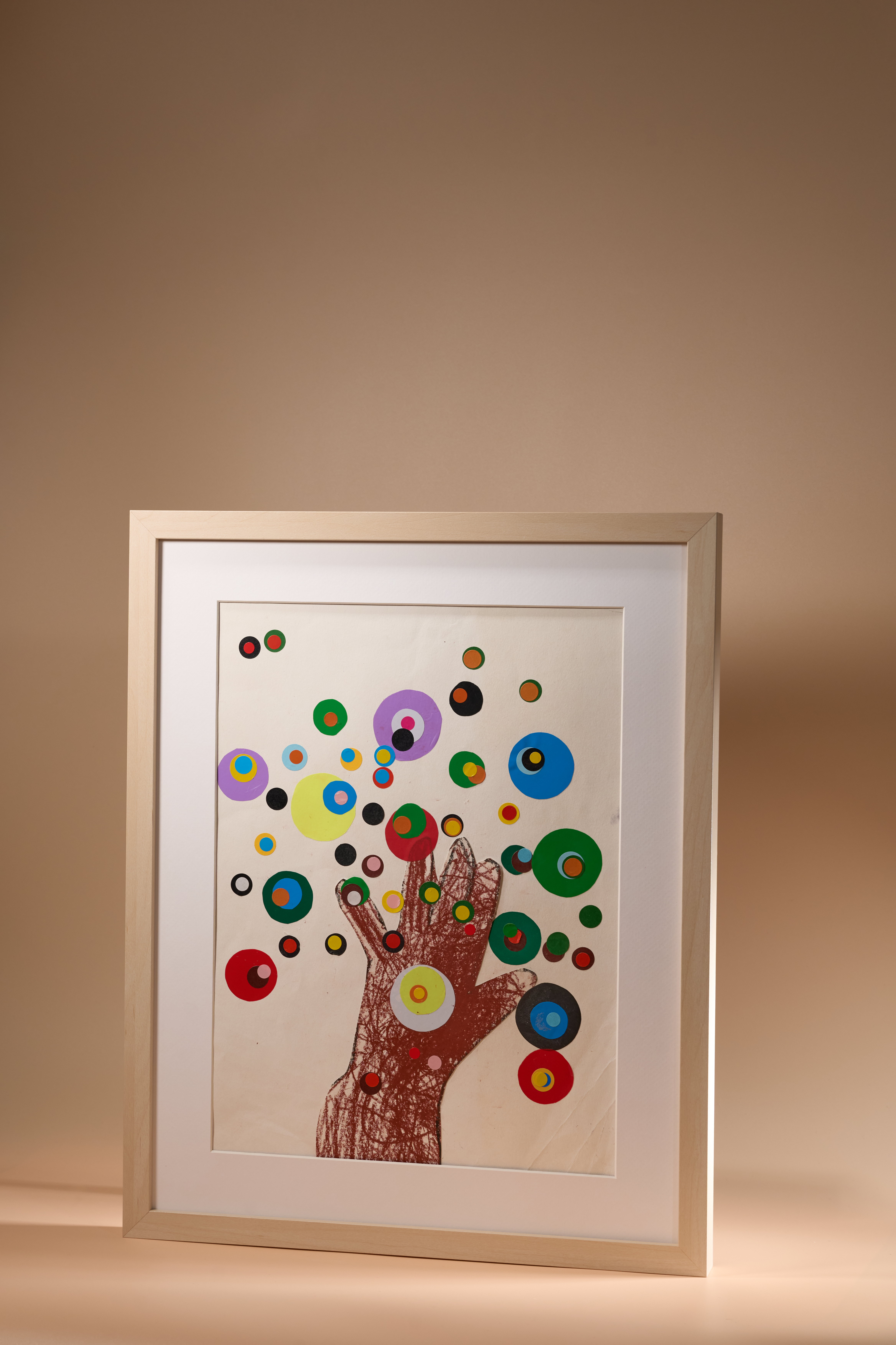 這幅作品的創作靈感來自19世紀畫家瓦西裡‧康丁斯基。作品呈現了一棵手形的樹木,枝葉伸延之處散佈著眾多重疊的圓,營造出一種繽紛奪目的視覺效果。圓形圖案的運用賦予了作品一種神秘和超越的意味,暗示著生命的循環和延續。