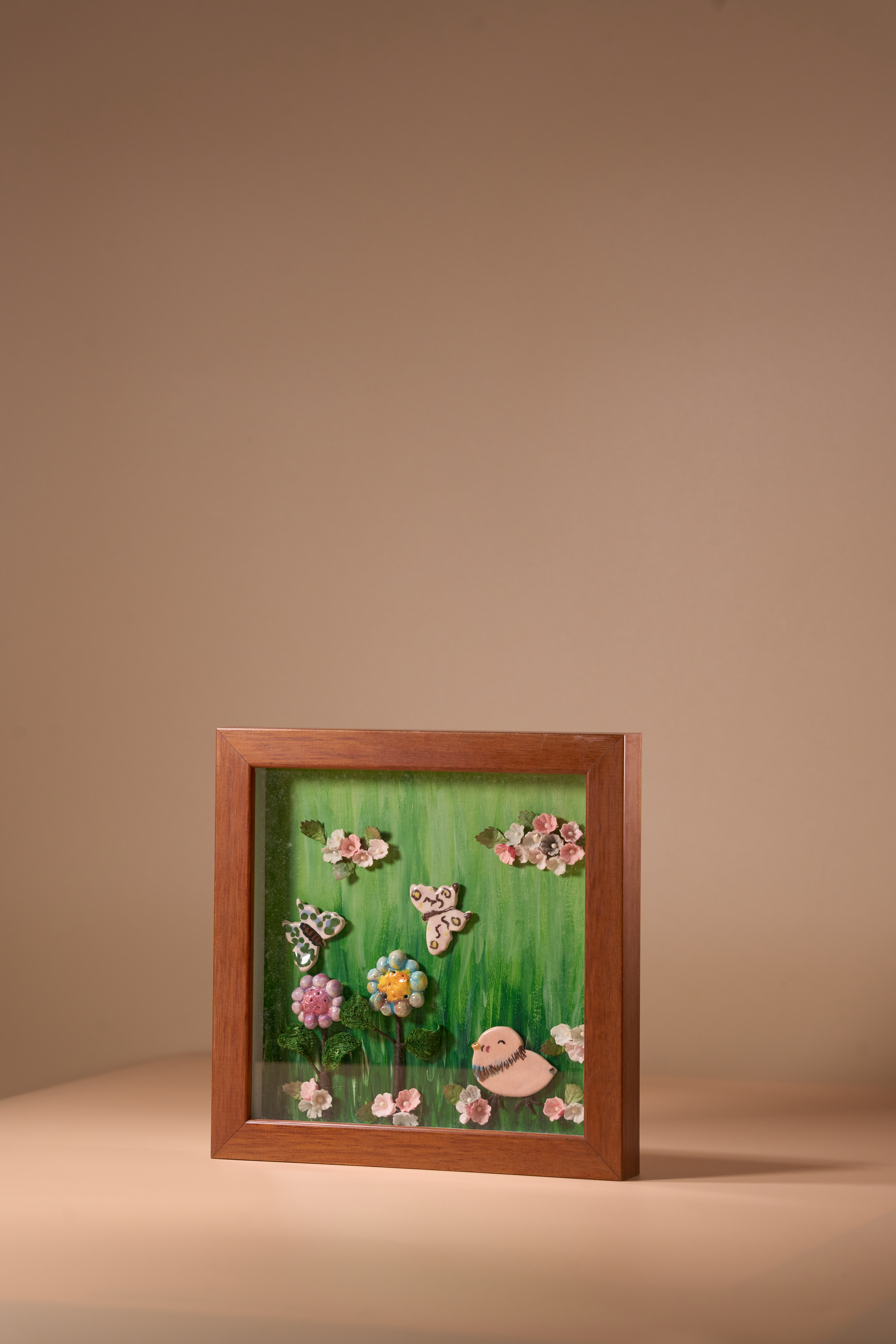 《蝶舞翩翩》是一幅由三位殘疾學員合力完成的陶瓷畫。畫中蝴蝶穿梭花間,鳥兒悠然自得,花朵立體精緻。每位學員各展所長,展現協作精神與創意,傳遞生命力與希望,洋溢著溫馨與活力。三人均對藝術創作尤有興趣,在導師的指導下,三人能合作製作出不少意境美麗的作品。 作者: 冼麗華/劉幹華/羅綺蓮 單位名稱: 安定工場 作品種類: 陶瓷低溫泥、手工藝物料畫 作品尺吋: 21cm (W) x 21cm (H) 註: 1. 每件藝術作品均由協會的服務使用者創作,將以先到先得形式確認。 2. 藝術作品實物可能與照片略有差異,敬希垂注。 3. 每件作品均附有尺吋資料以供參考。 4. 捐款可獲發正式收據作為稅務減免。 5. 作品將於慈善藝術展覽結束後約2個月內送交予善長。 6. 請於送貨地址一欄填寫正確郵寄地址,以便我們將藝術品送達。 7. 協會十分感謝善長的捐獻,捐款一經確認,恕不退還。 8. 如有任何爭議,協會保留一切權利。