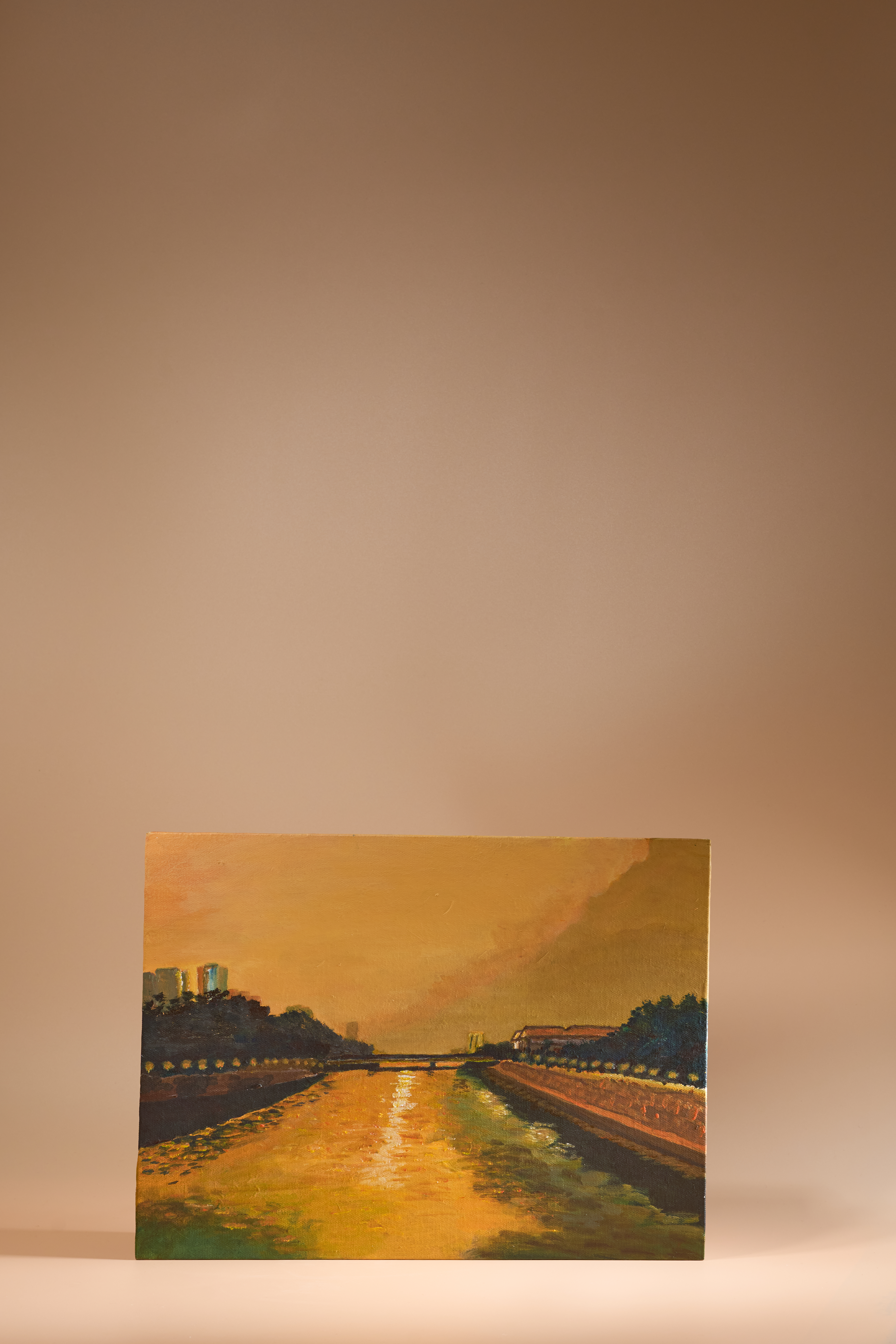 城門河既是沙田地標,黃昏時份的美景讓人想在橋上多留一會,享受當中由日轉夜的動態,作者也不例外,陶醉於美景當中,以畫筆留下它的黃昏美景。