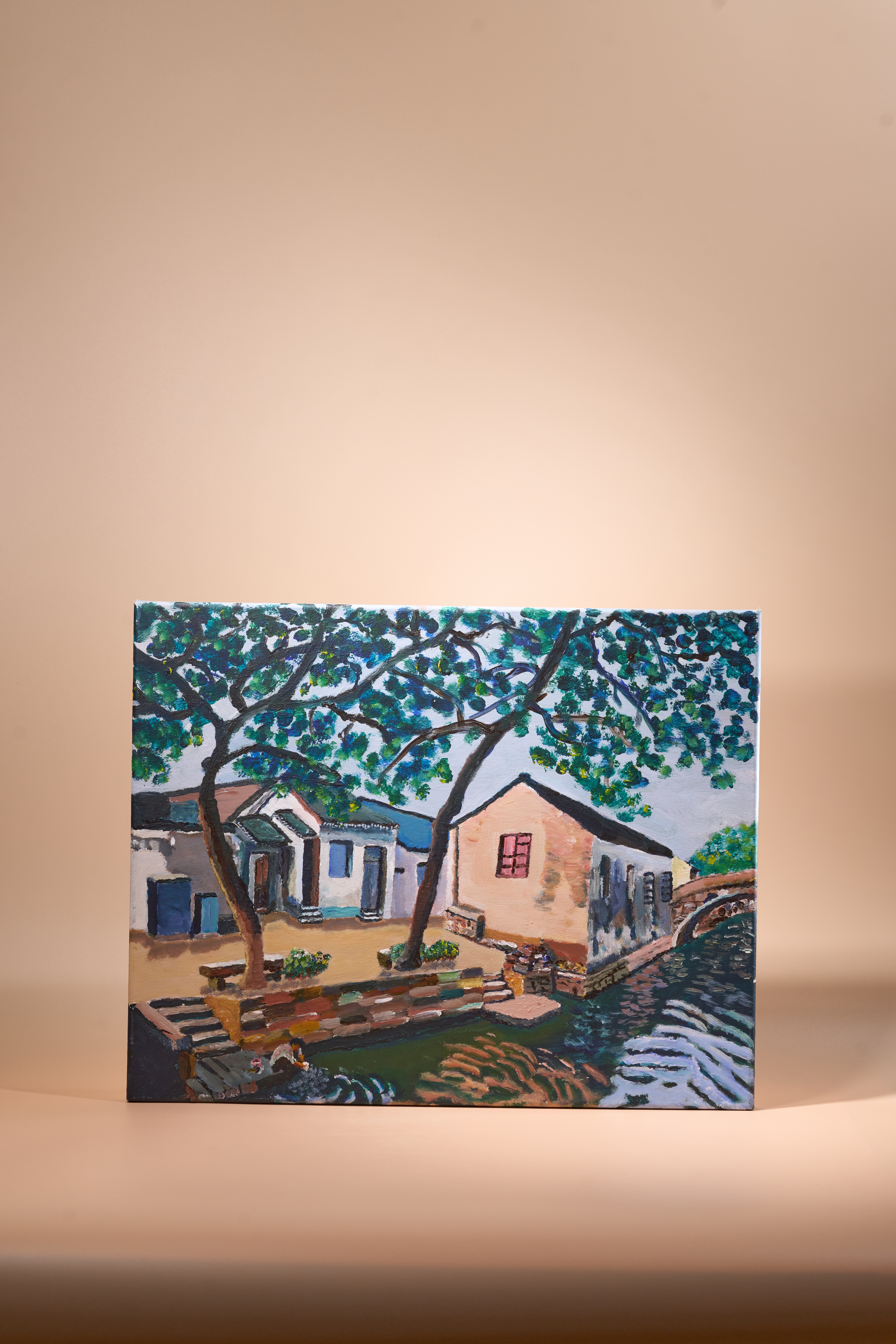 作者眼中的江南水鄉,完完全全一副小橋流水人間的模樣,與世無爭、悠然自得,賞畫者也會感到豁然開朗。