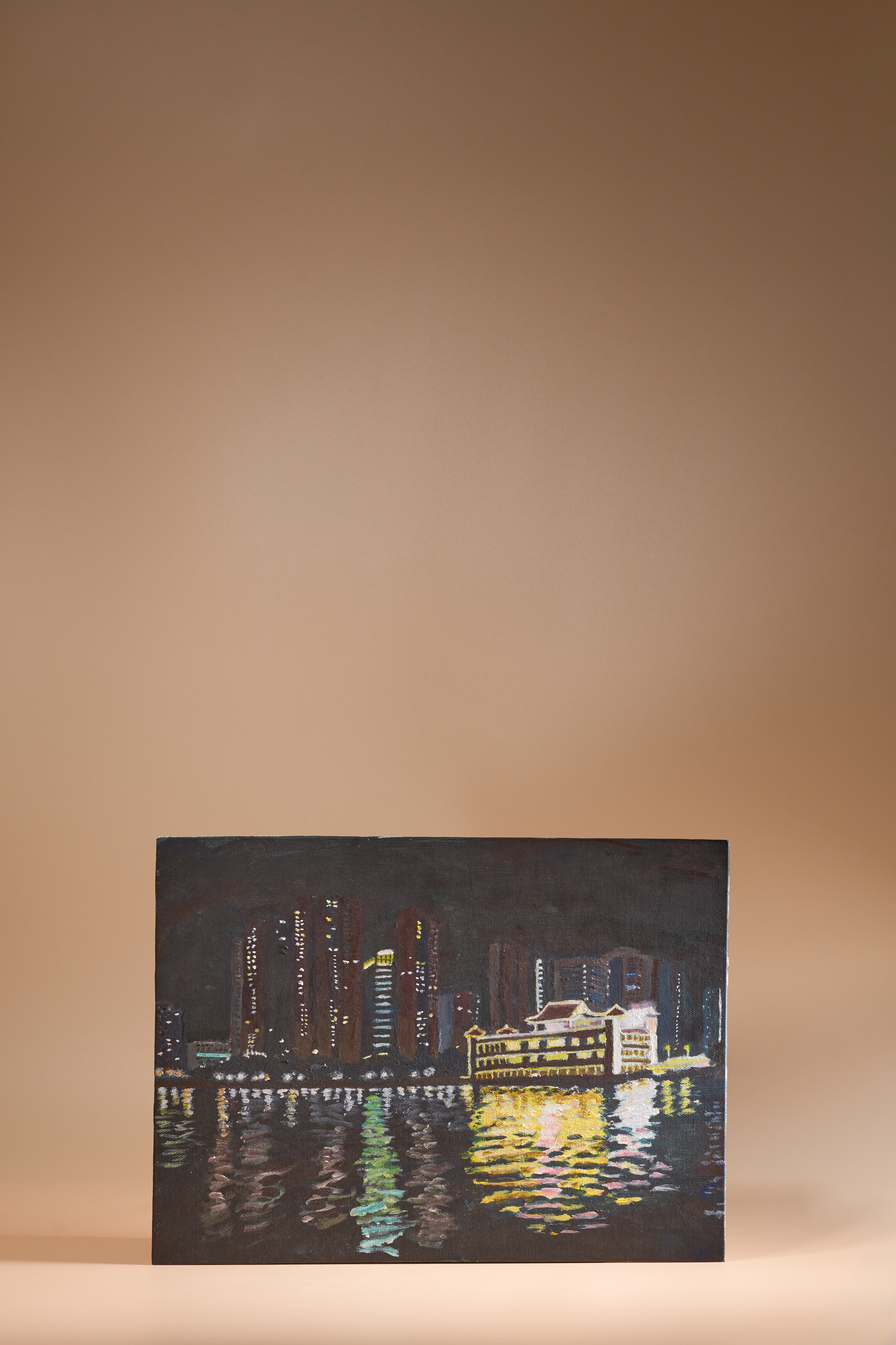 作者愛以筆代替相機鏡頭,把美麗的景色記錄下來,即使夜幕低垂,作者腦海中的城門河仍是明艷照人,尤其是河面上的光影,燈火通明,搶去了漆黑的主角位置。