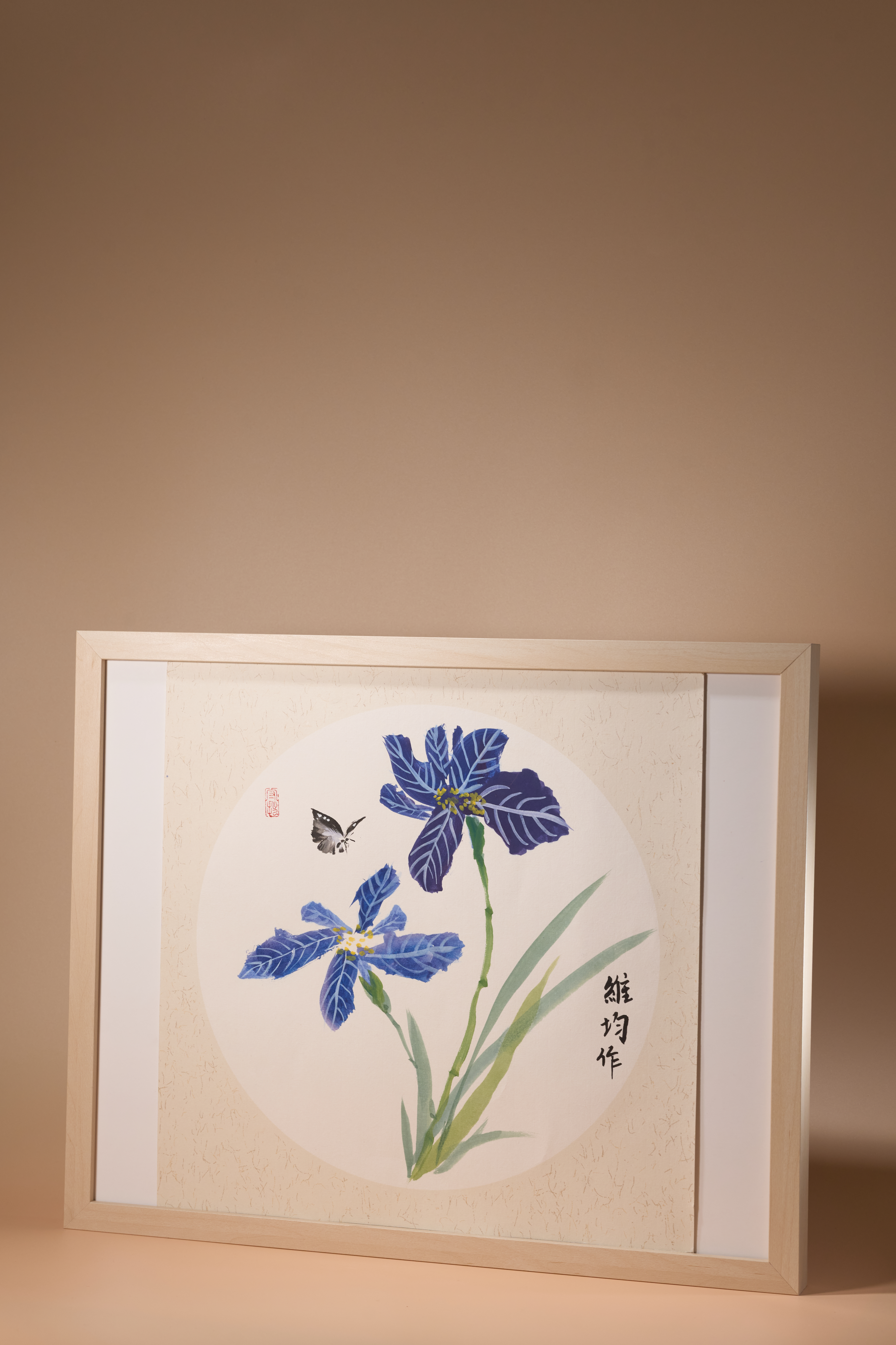 畫作以圓形構圖呈現,主題圍繞愛的溫柔陪伴。兩朵藍色鳶尾花在畫中彼此依偎綻放,如摯愛間的守護與支持,一隻蝴蝶相隨飛舞,象徵愛意的傳遞與希望。在素白園境裏,花與蝶靜靜交織出溫暖和諧,如夜色中閃爍的愛之星辰。維均年少罹患小腦萎縮,透過繪畫,他重拾心境的平和。維均喜歡繪畫植物,因植物形態萬千,富生命力,展現迎風屹立的堅韌。 作者: 顏維均 單位名稱: 新界東家居支援服務 作品種類: 水彩畫 作品尺吋: 40cm (H) x 50cm (W) 註: 1. 每件藝術作品均由協會的服務使用者創作,將以先到先得形式確認。 2. 藝術作品實物可能與照片略有差異,敬希垂注。 3. 每件作品均附有尺吋資料以供參考。 4. 捐款可獲發正式收據作為稅務減免。 5. 作品將於慈善藝術展覽結束後約2個月內送交予善長。 6. 請於送貨地址一欄填寫正確郵寄地址,以便我們將藝術品送達。 7. 協會十分感謝善長的捐獻,捐款一經確認,恕不退還。 8. 如有任何爭議,協會保留一切權利。