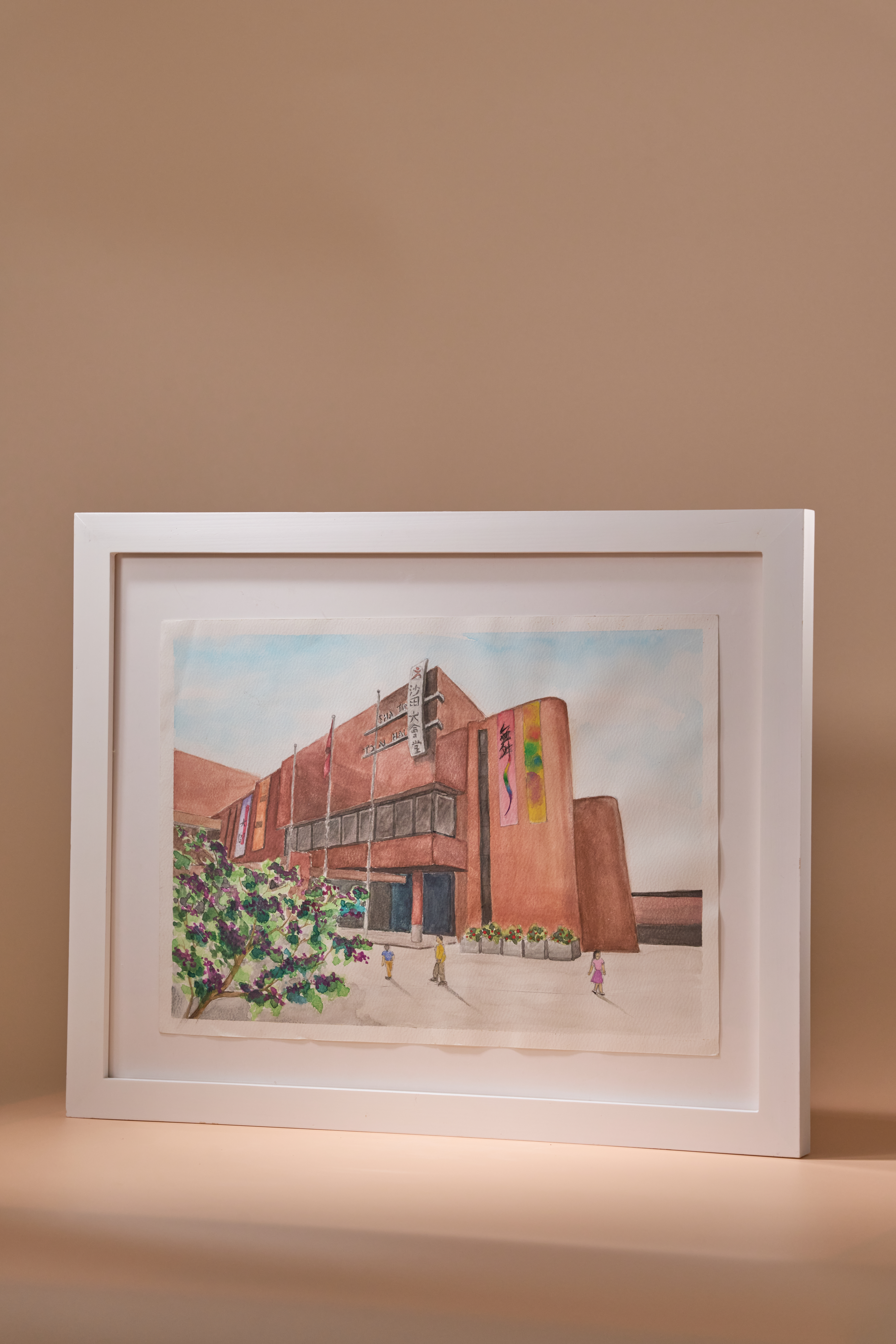 作者在沙田長大,亦愛以當地景物作為繪畫題材,畫中的沙田大會堂,正是他常常經過的地方,自然「熟能生巧」。