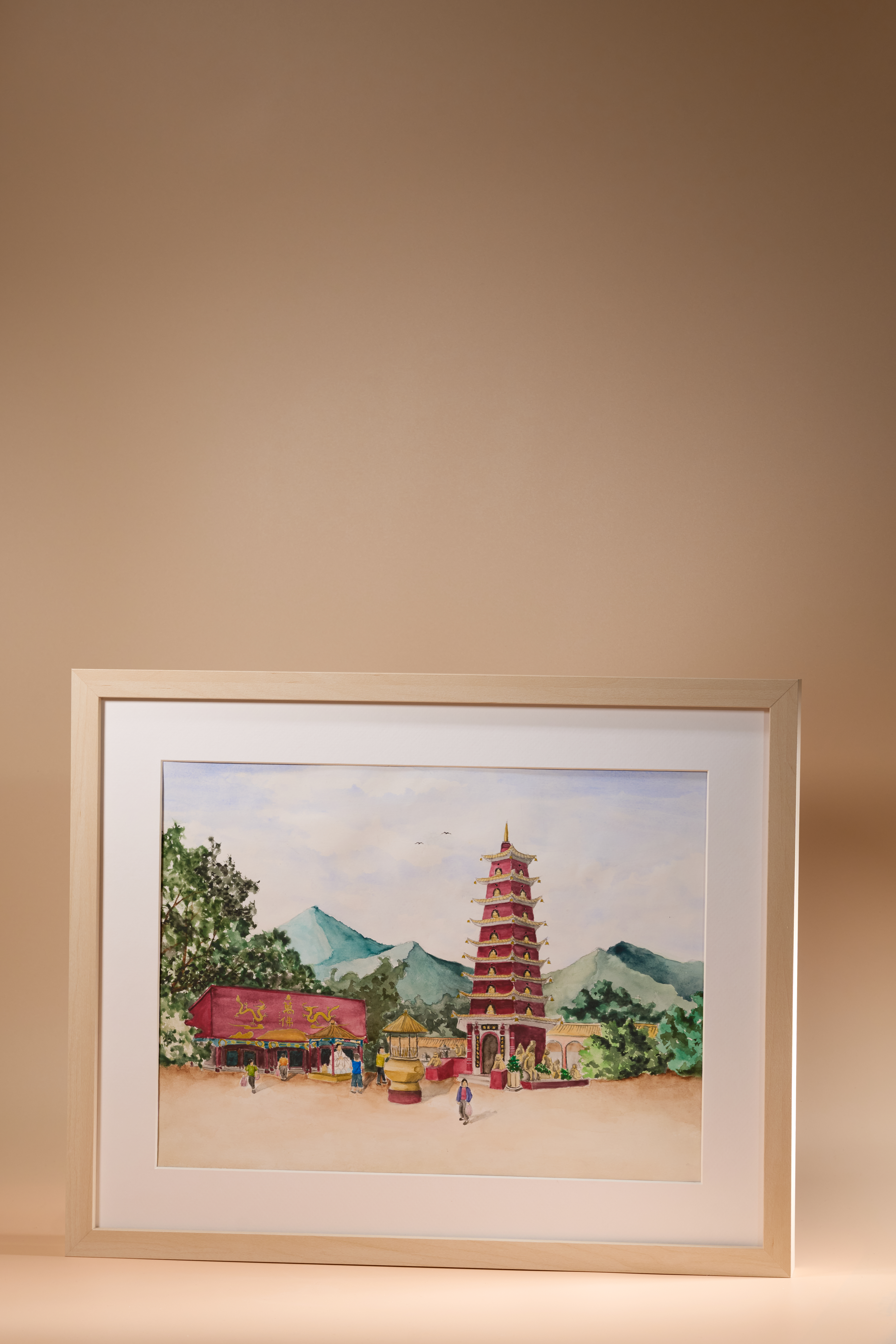 作者愛繪畫香港景物,今日沙田雖然已改變不少,難得萬佛寺仍是舊模樣,作者透過刻畫沙田的地標,從而表達對自身成長地方的愛。