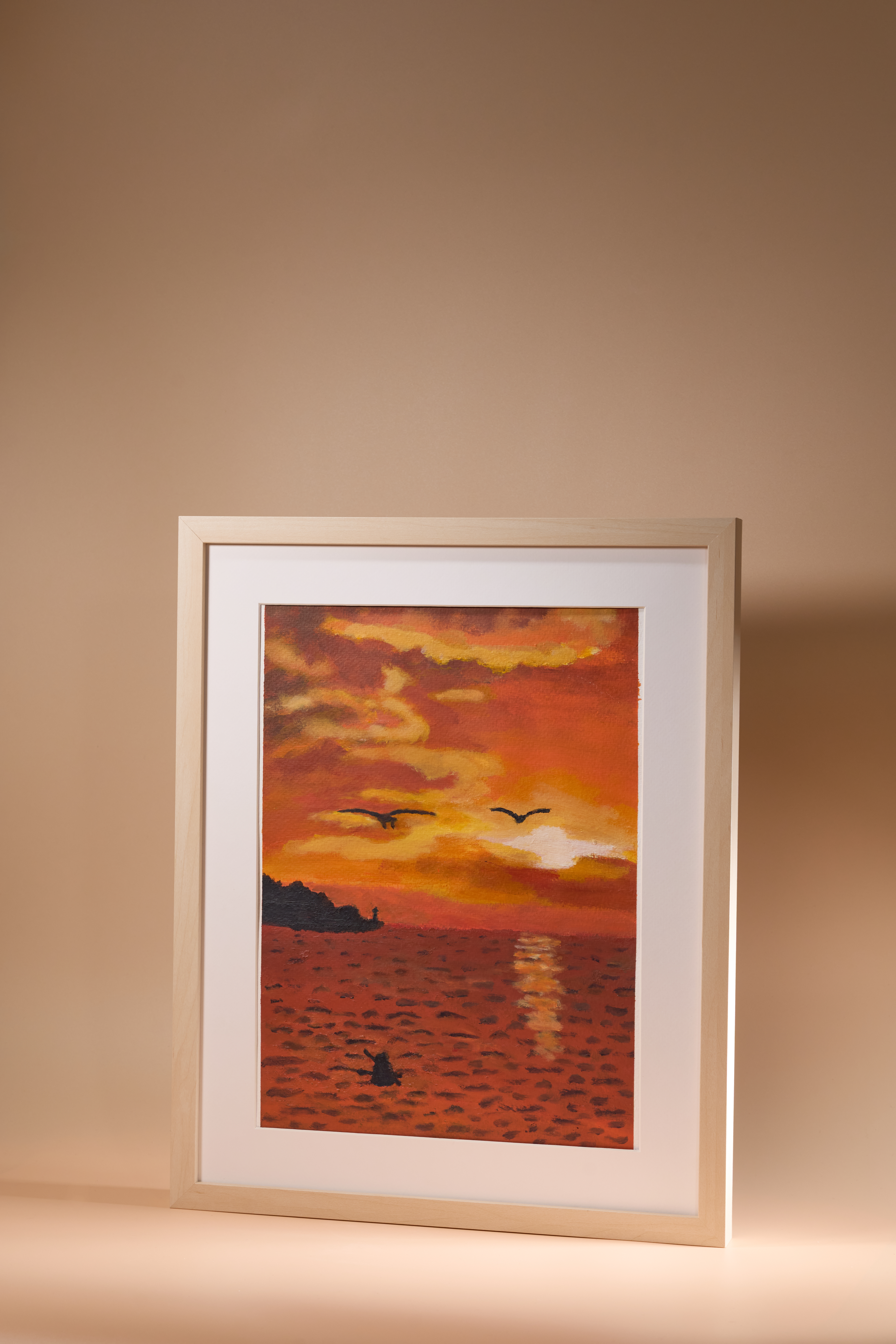 作品主角是天空中的一雙飛鷹,一起翱翔在黃昏之中,結伴欣賞餘暉,一同迎接未知的晚空。