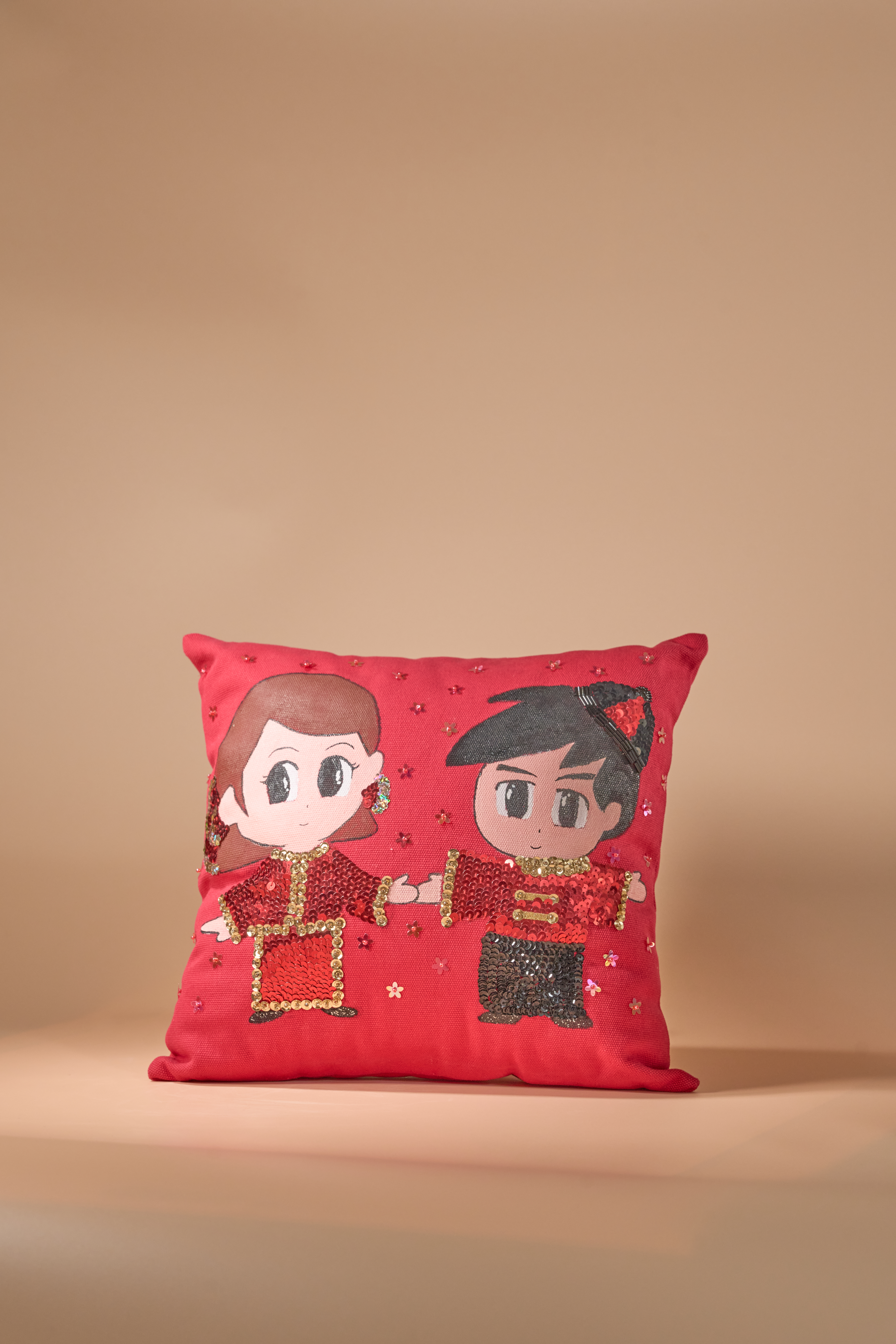 即使作者手部活動能力有限,但無阻她的刺繡才藝,兼且愛心滿滿,以此歡欣作品為天下新人送上祝福。