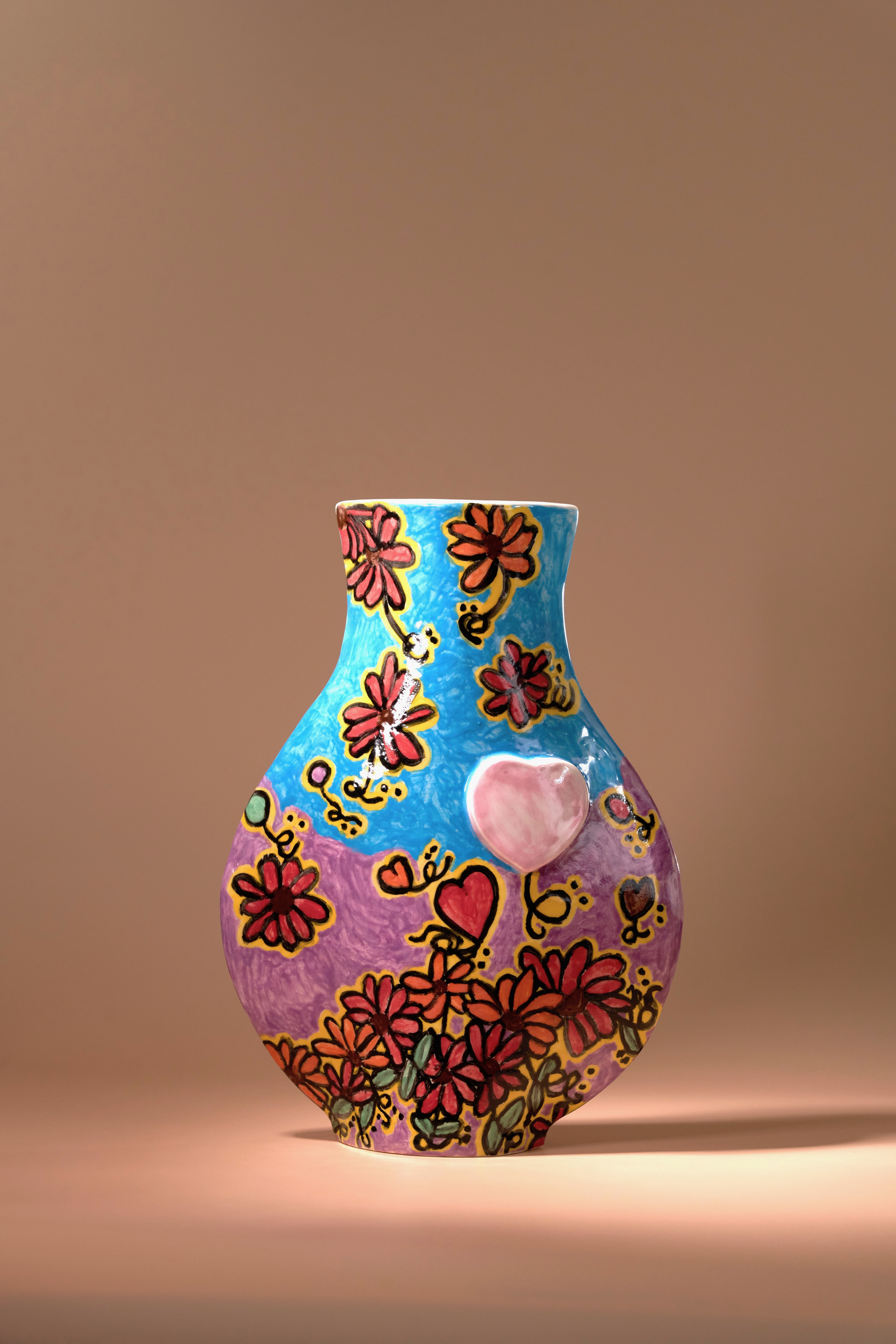 陶瓷部分由藝術家佩芬細心塑造花瓶形狀,以愛和溫柔灌注每一處細節;小恩則以繽紛色彩在瓶身描繪盛放紅花,傳遞愛的美好與活力。花瓶象徵兩位藝術家互相支持和陪伴,少女心中的純真與情感在工藝和繪畫中交融,將愛的感受融入創作。佩芬雖是陶藝新手,卻憑藉對泥土的熱愛和想像力,用雙手成就富有溫度的花瓶;小恩則精巧地捕捉花朵的細膩情感,將愛的觀察與心聲傾注於畫面。整件作品既有傳統也有現代氣息,展現兩人以愛為核心的創作力量,以及對花花世界的敏銳感受和情感表達。 作者: 梁佩芬/吳小恩 單位名稱: 賽馬會德田綜合職業康復服務中心 作品種類: 陶瓷 作品尺吋: 23cm (W) x 9cm (D) x 30.5cm(H) 註: 1. 每件藝術作品均由協會的服務使用者創作,將以先到先得形式確認。 2. 藝術作品實物可能與照片略有差異,敬希垂注。 3. 每件作品均附有尺吋資料以供參考。 4. 捐款可獲發正式收據作為稅務減免。 5. 作品將於慈善藝術展覽結束後約2個月內送交予善長。 6. 請於送貨地址一欄填寫正確郵寄地址,以便我們將藝術品送達。 7. 協會十分感謝善長的捐獻,捐款一經確認,恕不退還。 8. 如有任何爭議,協會保留一切權利。