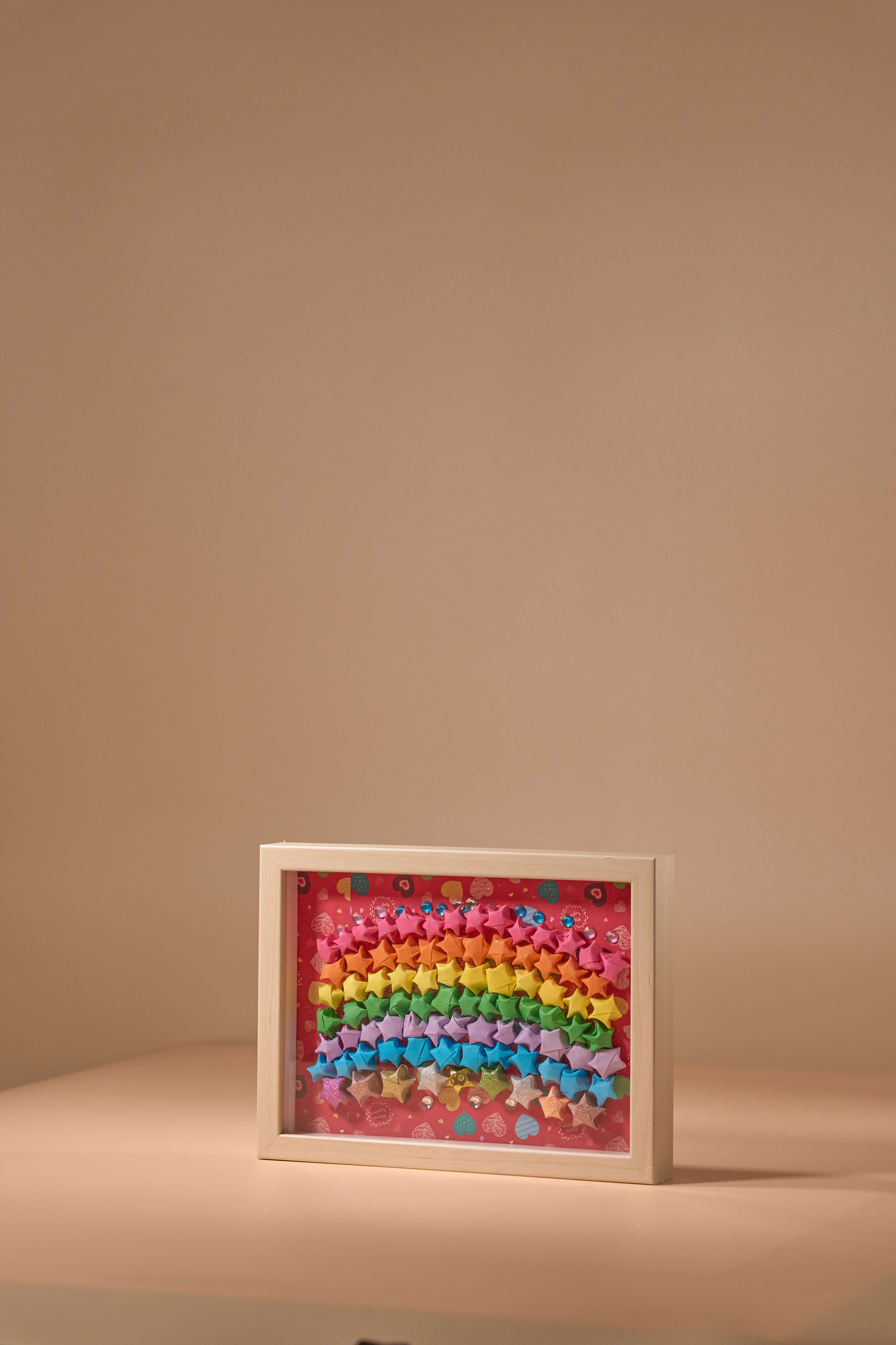 幸運星的彩虹漸層色彩,呼應著社會中多元的樣貌;失明的學員反覆摺疊詮釋「共融」所需的耐心與堅持;彩虹上的幸運星,每顆承載對平等與理解的祈願,當我們願意彼此靠近,便可築起跨越隔閡的橋樑。
